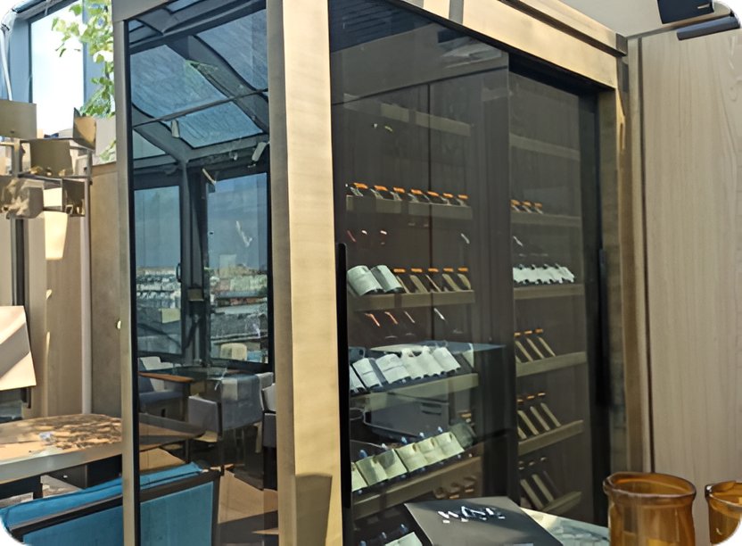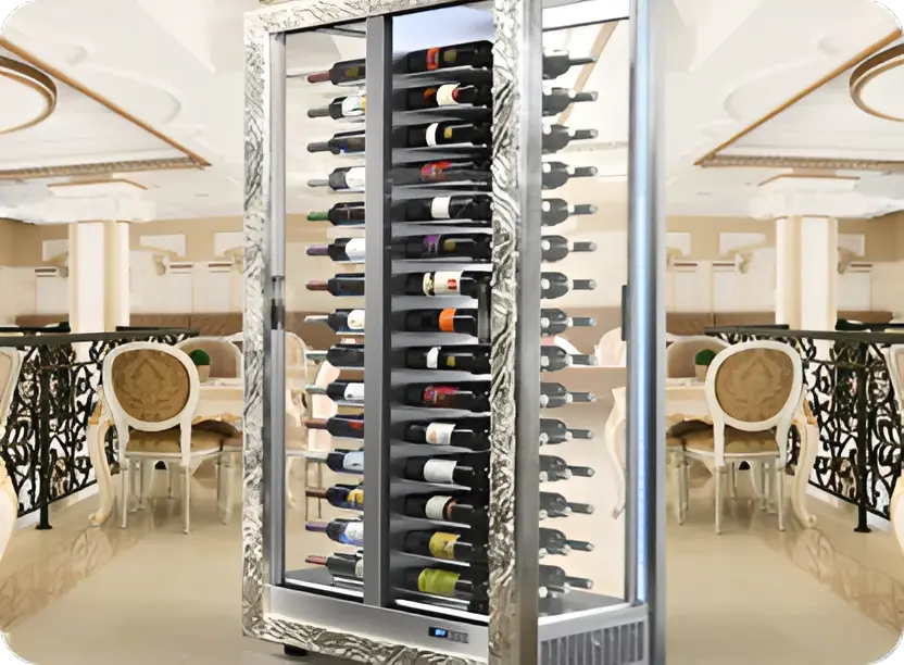 - Подходит для единичных бутылок и презентационных мест хранения.